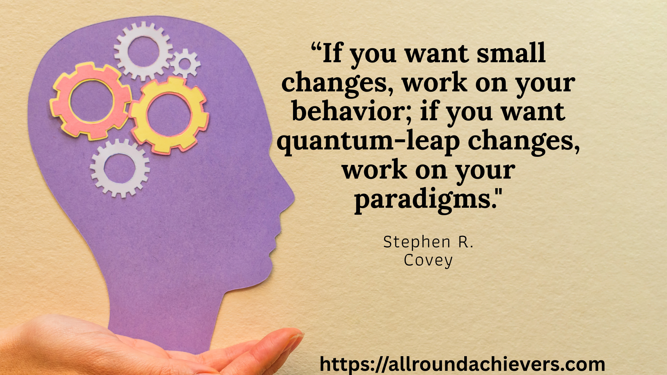 Want a Breakthrough? Change This First Posted on August 12, 2025August 12, 2025 by Franklin H. Ezenwa “If you want small changes, work on your behavior; if you want quantum-leap changes, work on your paradigms.” ~ Stephen R. Covey Share this: Share on Facebook (Opens in new window) Facebook Share on X (Opens in new window) X Share on Reddit (Opens in new window) Reddit Share on WhatsApp (Opens in new window) WhatsApp Share on Pinterest (Opens in new window) Pinterest Like this:Like Loading...